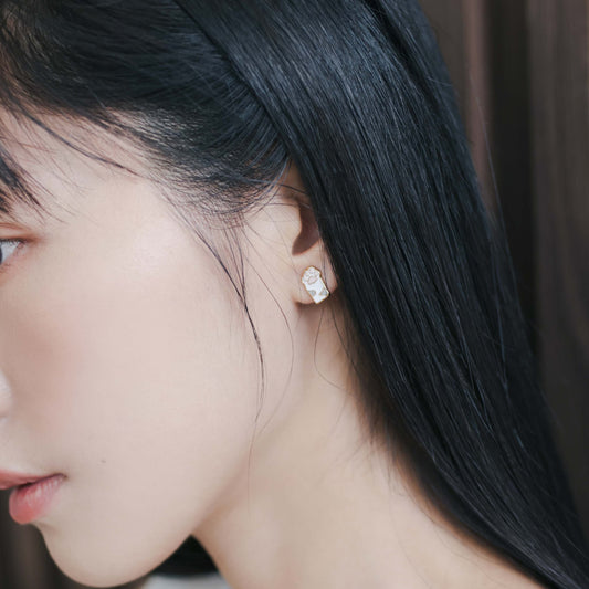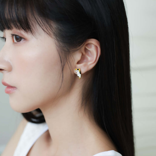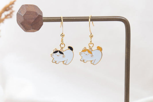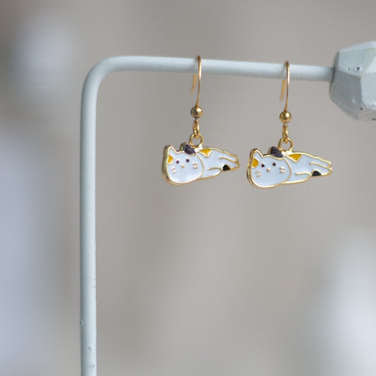 Fish n Gray Lazy Cat Enamel Stud Earrings