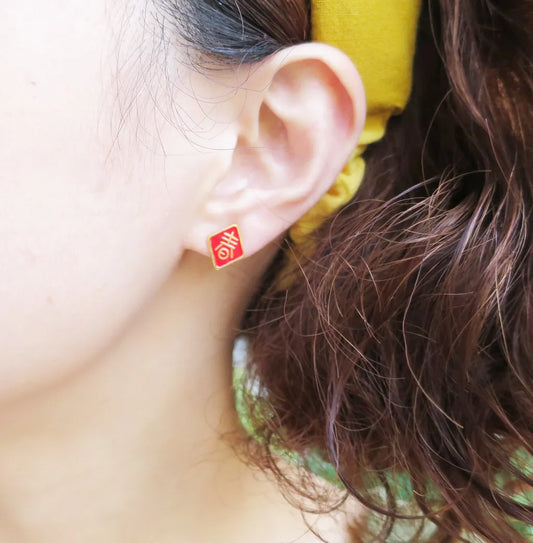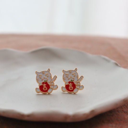 New! Lunar New Year Mismatched Enamel Earrings [One Piece]