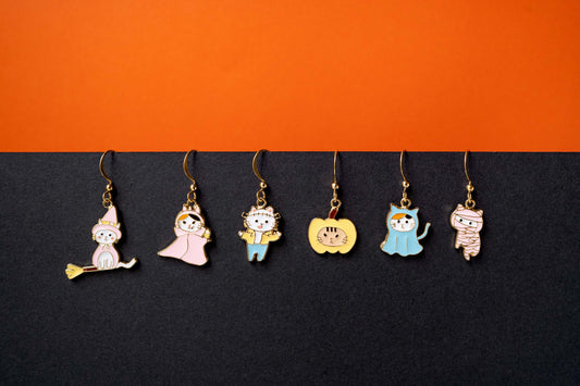 Halloween Cat Mismatched Enamel Earrings [One Piece]