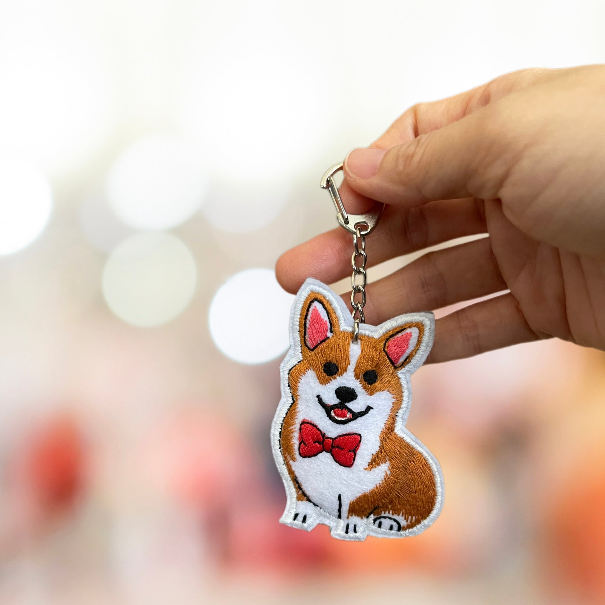 Corgi & the Bow Tie Handmade Embroidery Keychain