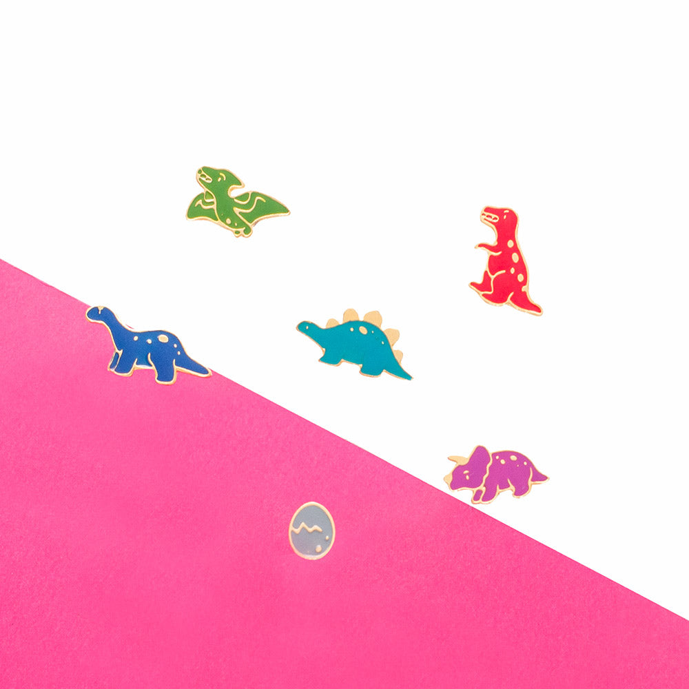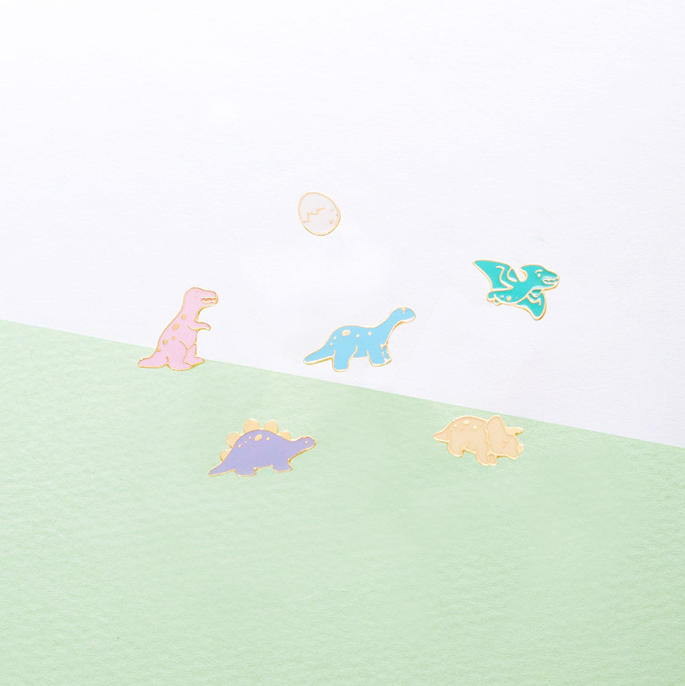Dinosaurs Mismatched Enamel Earrings [One Piece]
