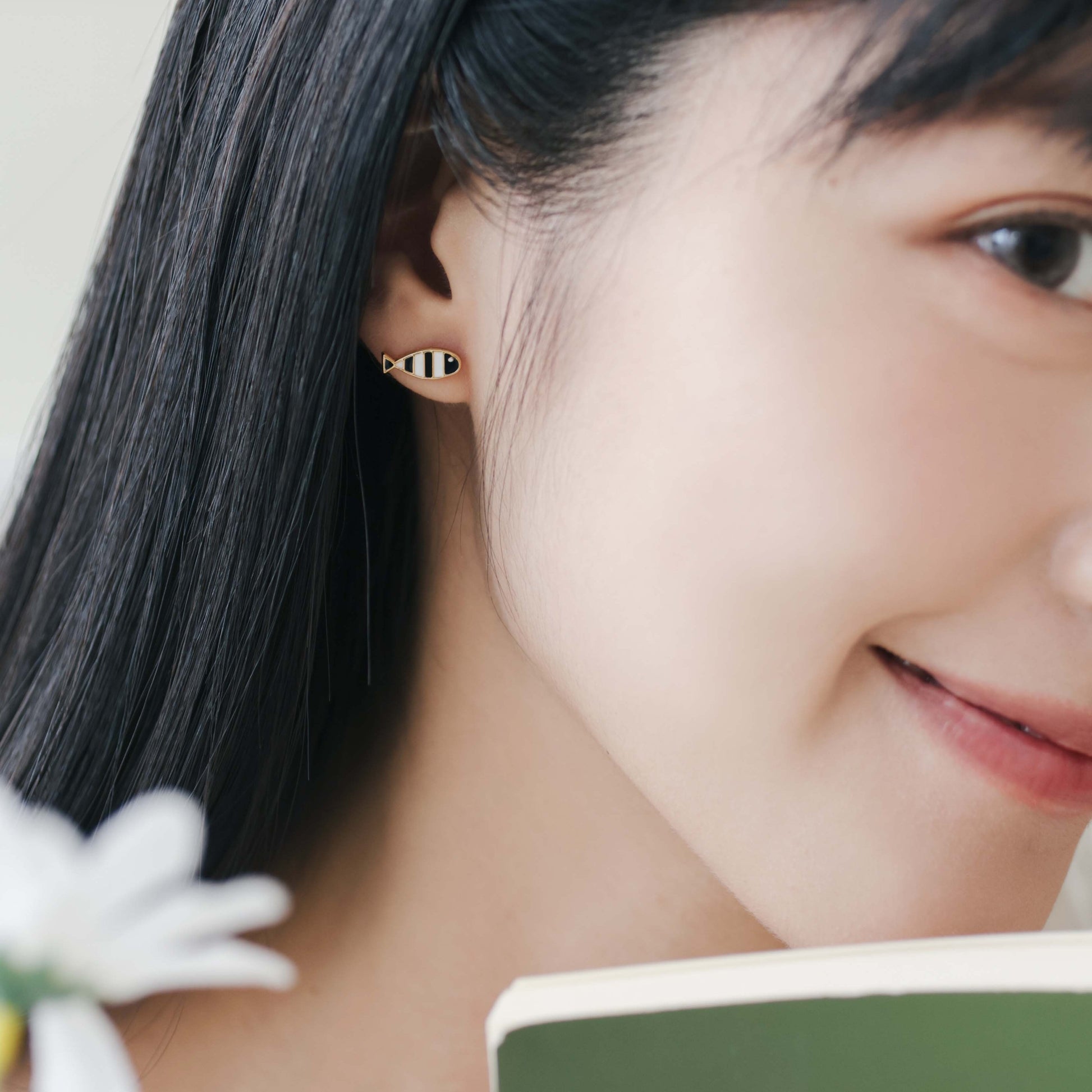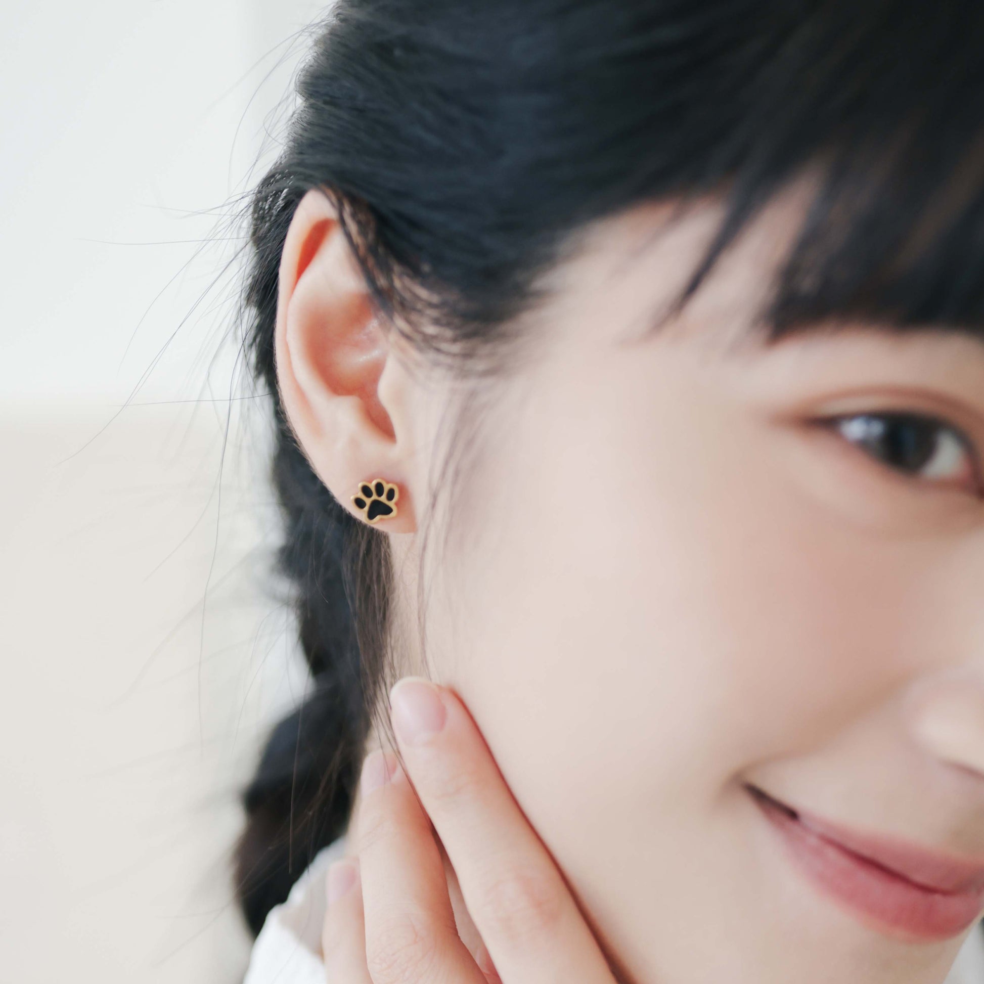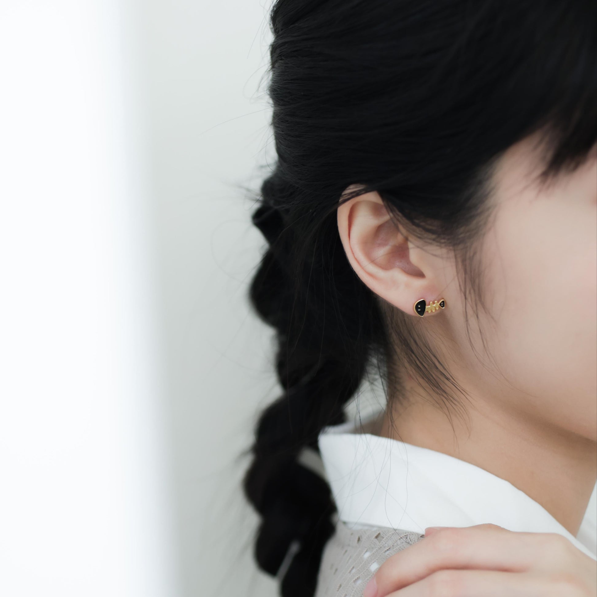 All jewelry pieces are handcrafted from hand cut brass, 24K gold plated, hand-painted enamel with surgical steel studs. Hypoallergenic.
