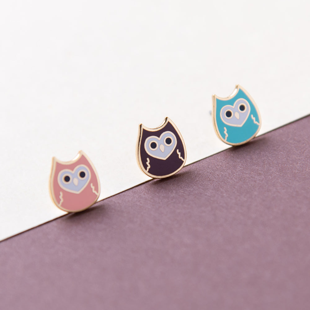 Little Owl Enamel Stud Earrings/ Bracelet/ Necklace