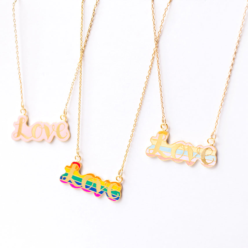 All jewelry pieces are handcrafted from hand cut brass, 24K gold plated, hand-painted enamel.