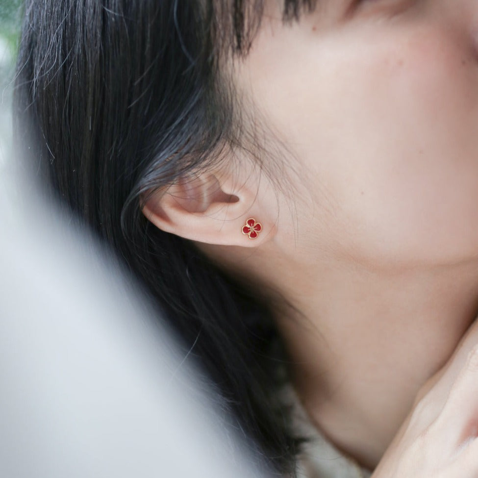Lucky Clover Enamel Stud Earrings