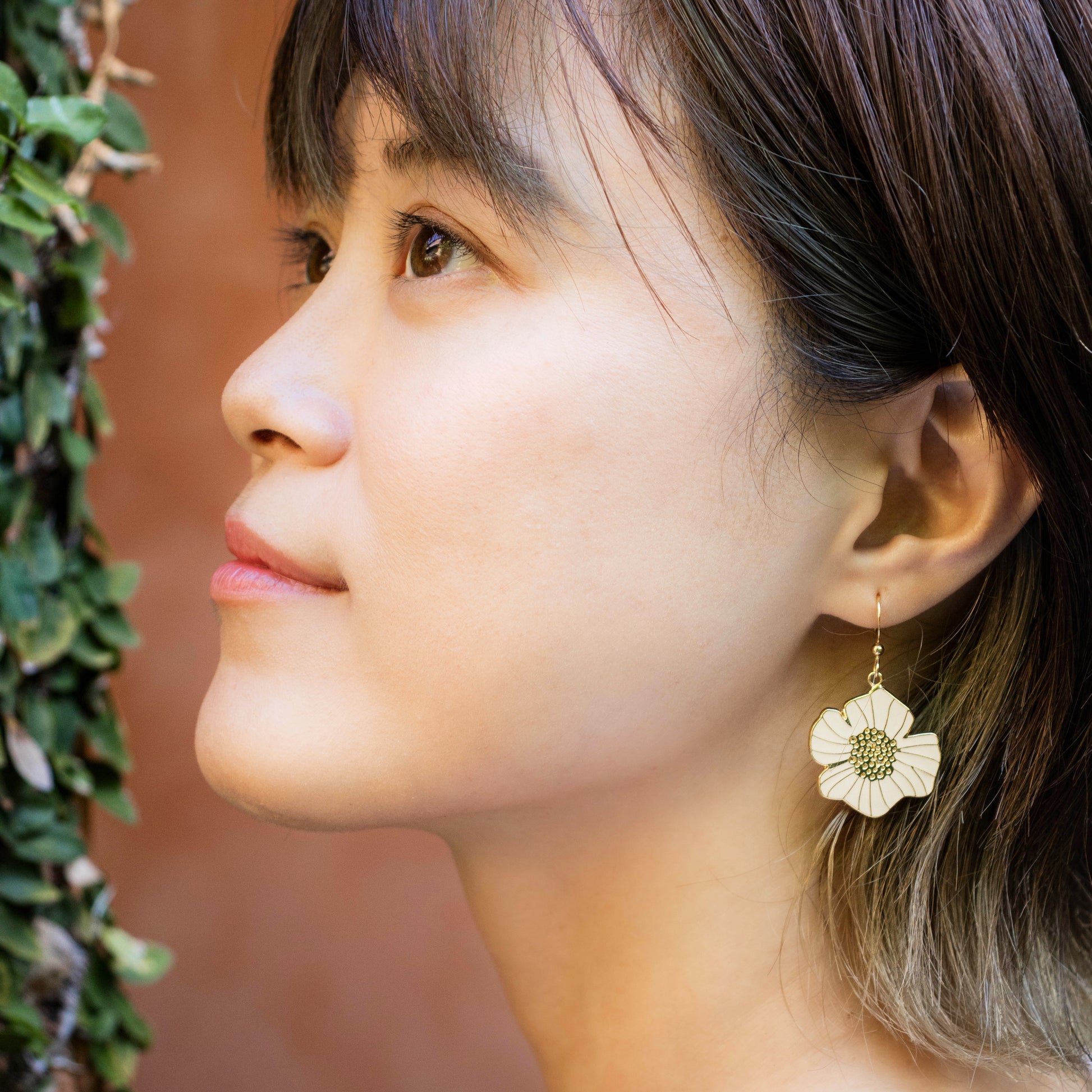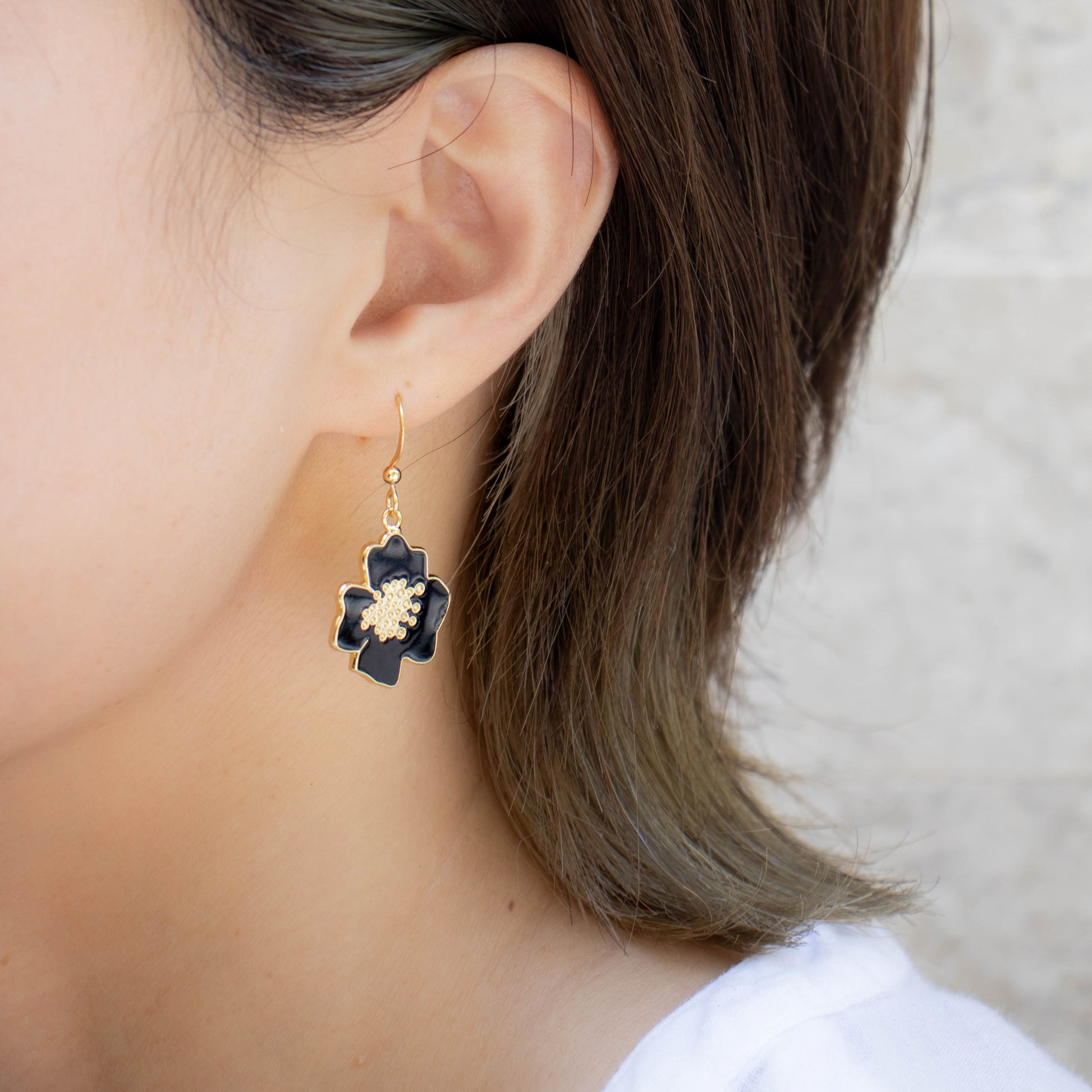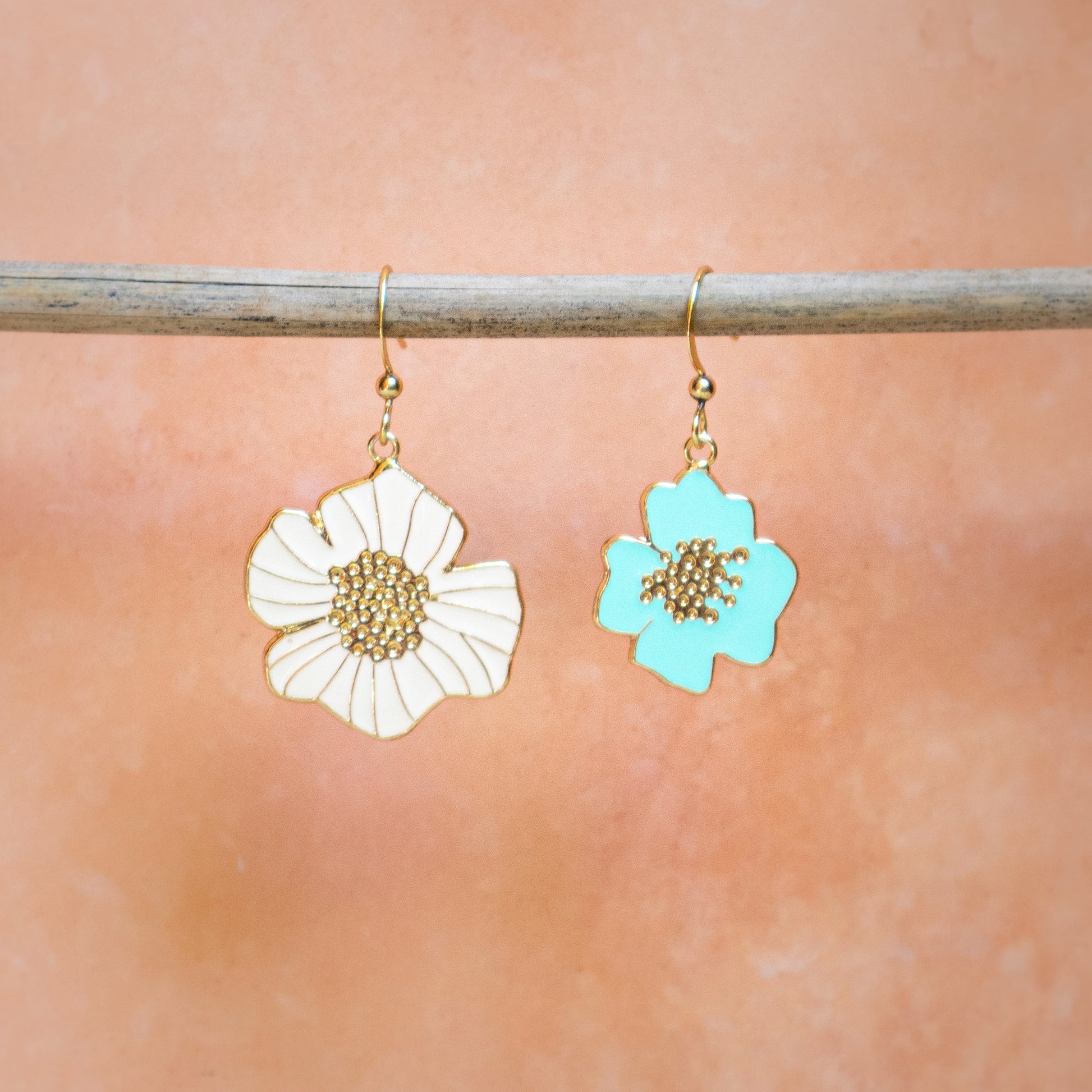 Mismatched Summer Hibiscus Enamel Drop Earrings