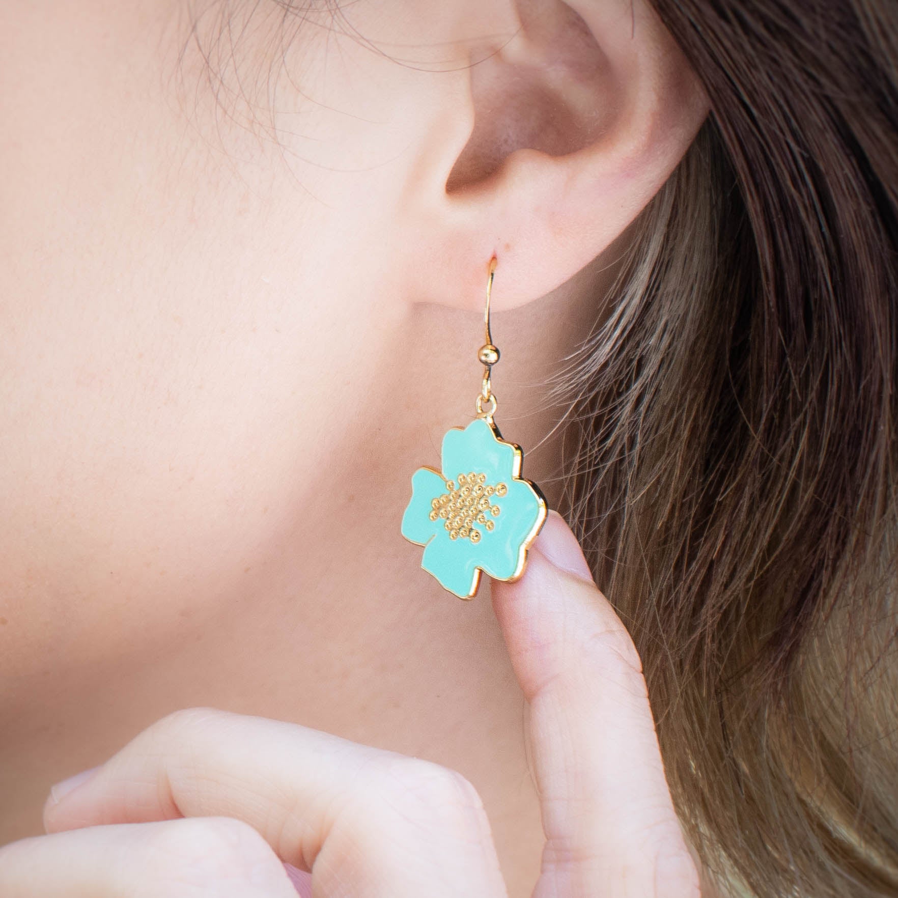 All jewelry pieces are handcrafted from hand cut brass, 24K gold plated, hand-painted enamel.