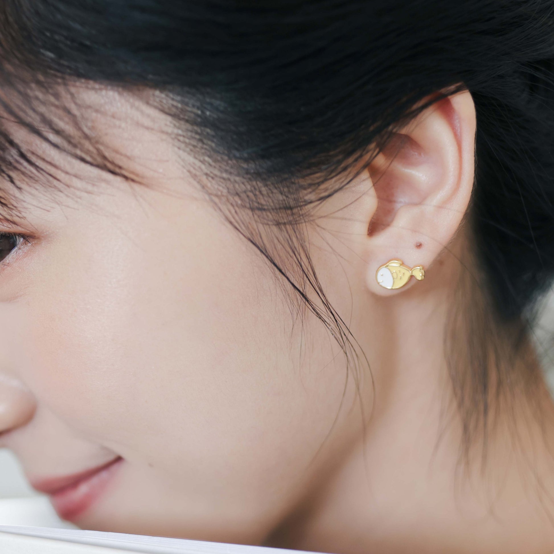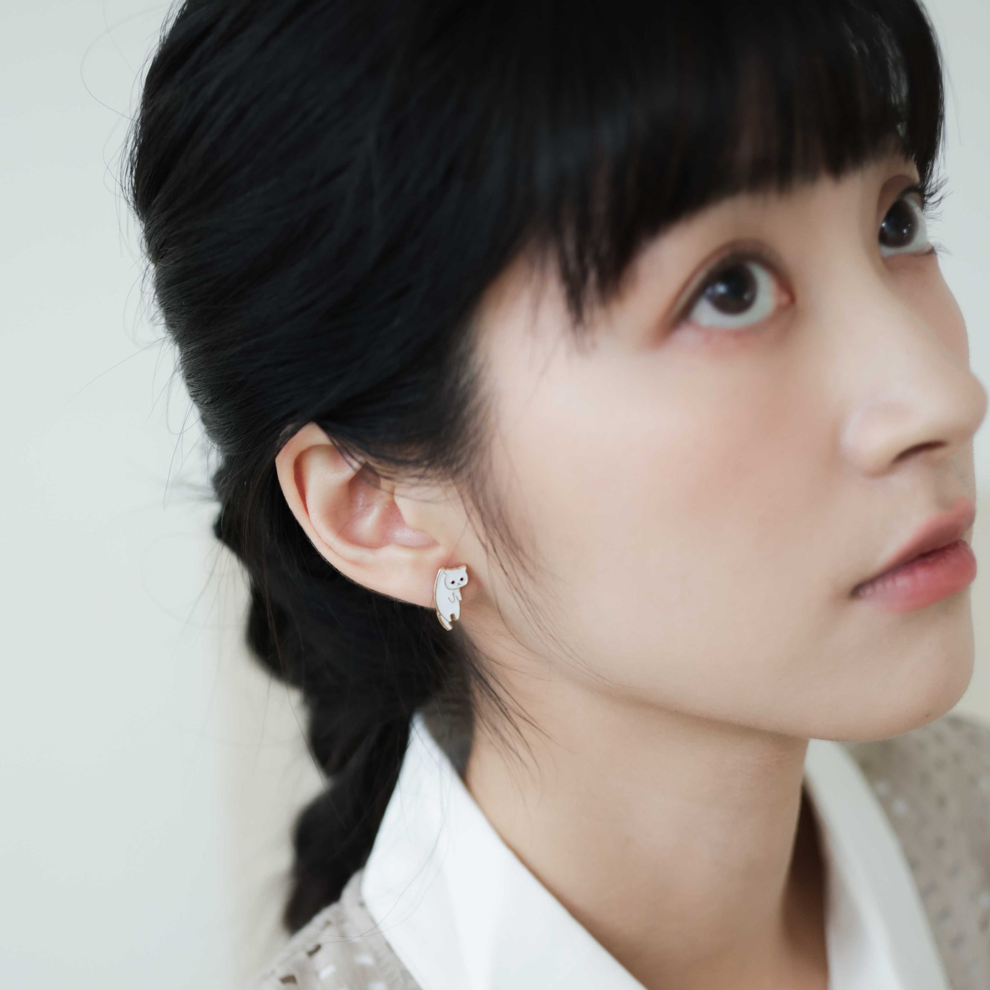 Li'l Fish n White Hanging Cat Enamel Stud Earrings