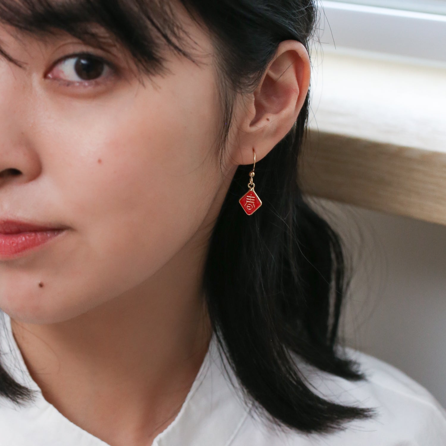 All jewelry pieces are handcrafted from hand cut brass, 24K gold plated, hand-painted enamel with surgical steel studs. Hypoallergenic.