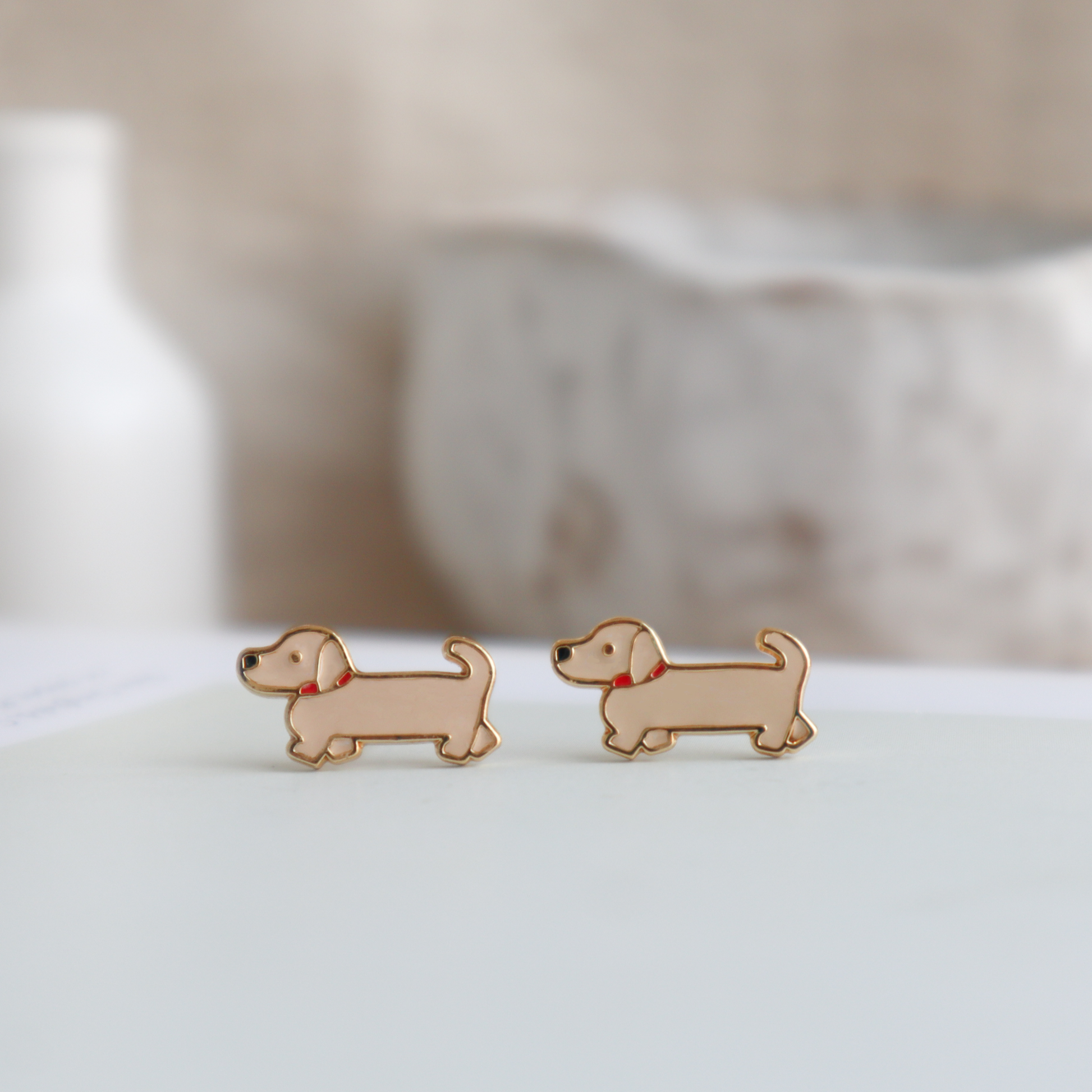 Tan Doxie (Dachshund) Enamel Stud Earrings